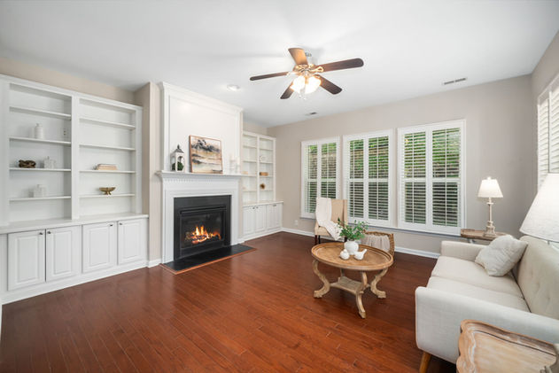 The cozy family room offers warmth and charm with a gas log fireplace, impressive built-ins, and plantation shutters that add a touch of elegance. The first-floor primary suite is a true retreat, featuring a spacious walk-in closet and a luxurious bathroom. You'll also find a dedicated office on the main level—ideal for remote work or homework—with high-speed Google Fiber available.